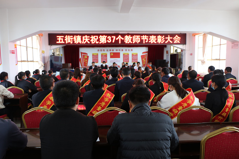 会上,马成福宣读了《中共五街镇委员会 五街镇人民政府关于表扬罗洪文等38名优秀教育工作者、优秀班主任、敬业奉献标兵、师德标兵及教学质量提升能手的决定》,对在五街教育事业发展中作出卓越贡献的优秀教师给予表扬和鼓励。