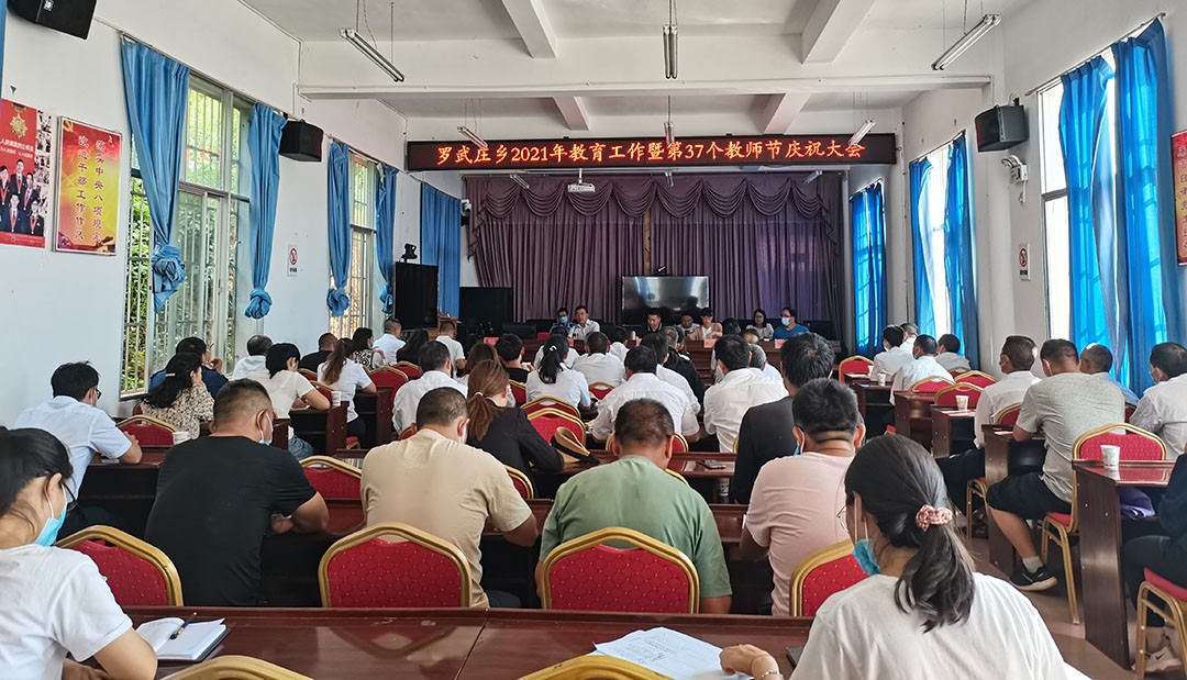 9月9日下午,罗武庄乡召开2021年教育工作暨第37个教师节庆祝大会。乡党政班子成员,各站所负责人,罗武庄初级中学、中心校、中心幼儿园全体教师参加会议。