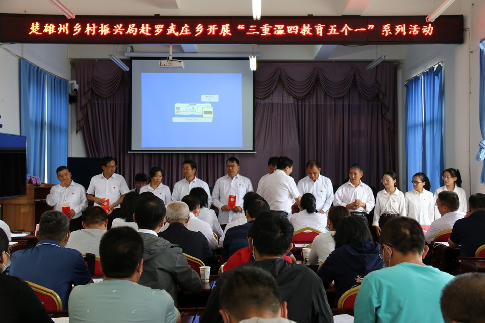 8月31日上午,“三重温四教育五个一”锤炼初心、感悟使命系列活动在罗武庄乡政府礼堂举行。罗文慧结合楚雄州党史,讲授精彩的党史学习教育专题党课,并对干部规划家乡行动做专题培训。活动中,参会人员重温党章、入党誓词、陈然烈士的“明志书”,齐过“党员政治生日”,集体接受警示教育,感悟初心使命,坚定理想信念,凝聚启航新征程、奋进新时代的力量。