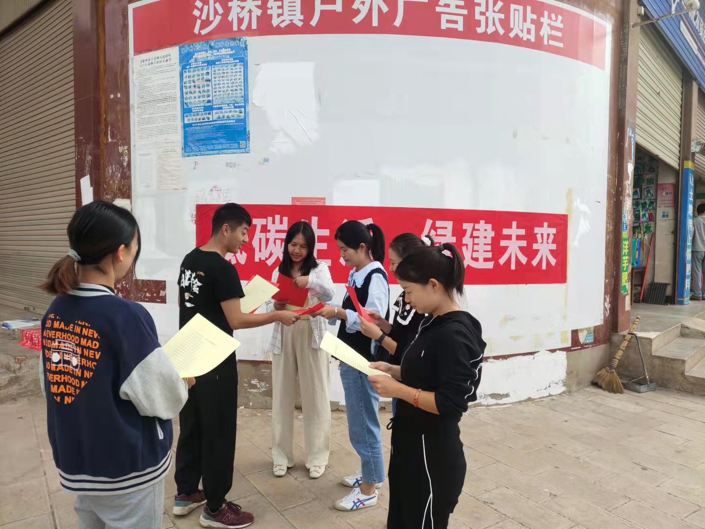 在全国低碳日到来之际,为提高全民节约意识,营造良好节能氛围,沙桥镇组织经济发展办、党政办6名干部职工在农贸市场、中心完小及镇区街边集中开展主题为“低碳生活,绿建未来”节能宣传周和低碳日活动。