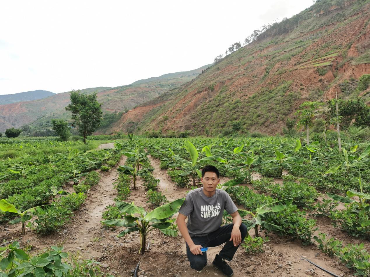 “我之前是去普洱买了2000株的香蕉苗,心想在礼舍江底打造一个香蕉种植基地,但当我把香蕉苗种植下去后,发现由于香蕉苗太小,剩余的空地还很多,于是想着将剩余空地“用活”,套种上一种生长周期短且不影响香蕉苗生长的经济作物,便有了现在的‘黑花生+香蕉’的套种结合”。先锋合作社理事长彭正周向笔者介绍道。