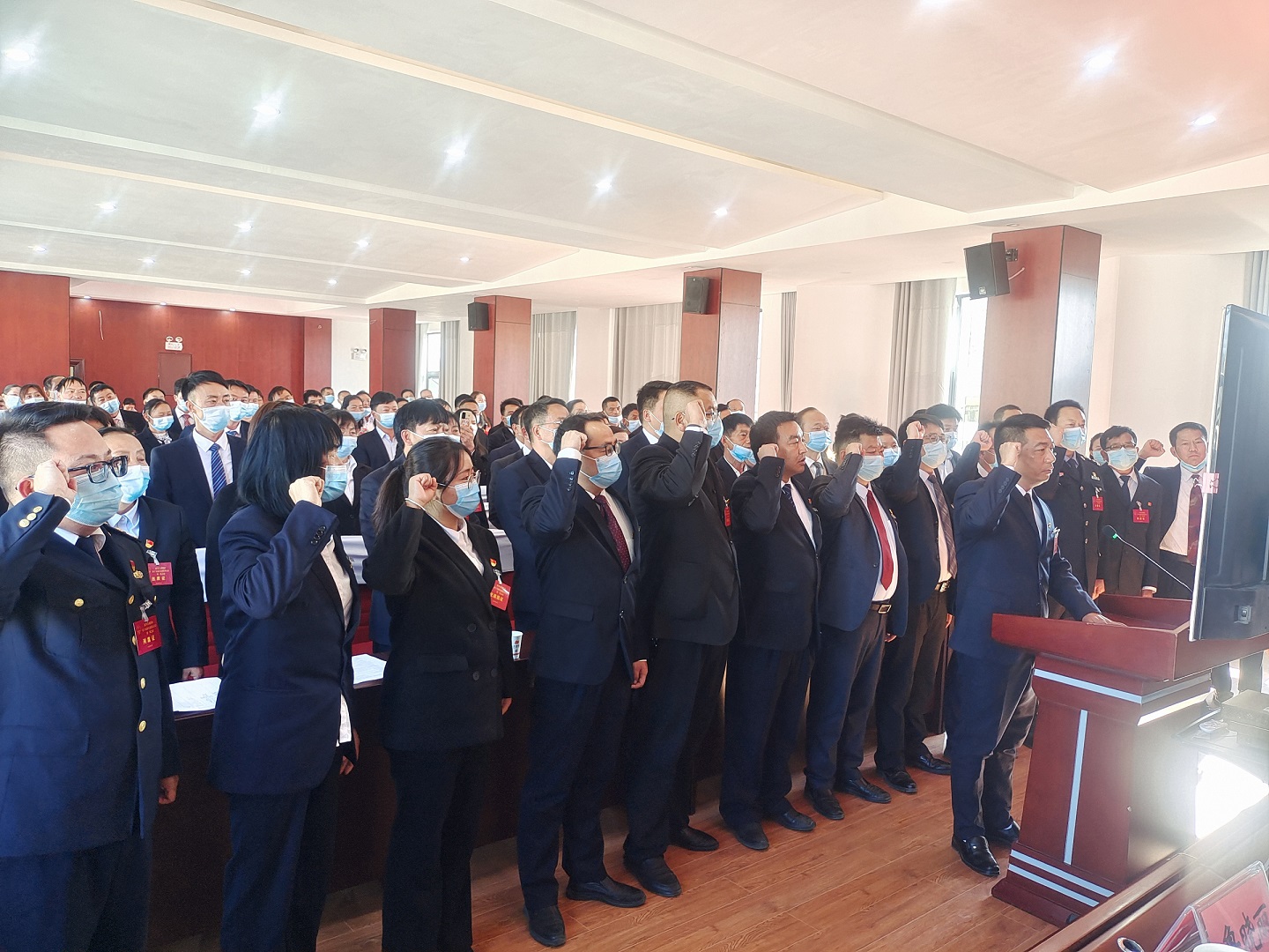 镇人大主席团成员,镇人民政府镇长,副镇长在镇党委书记张育果的监誓下、镇人大主席团主席者强春的领誓下庄严向《中华人民共和国宪法》宣誓。