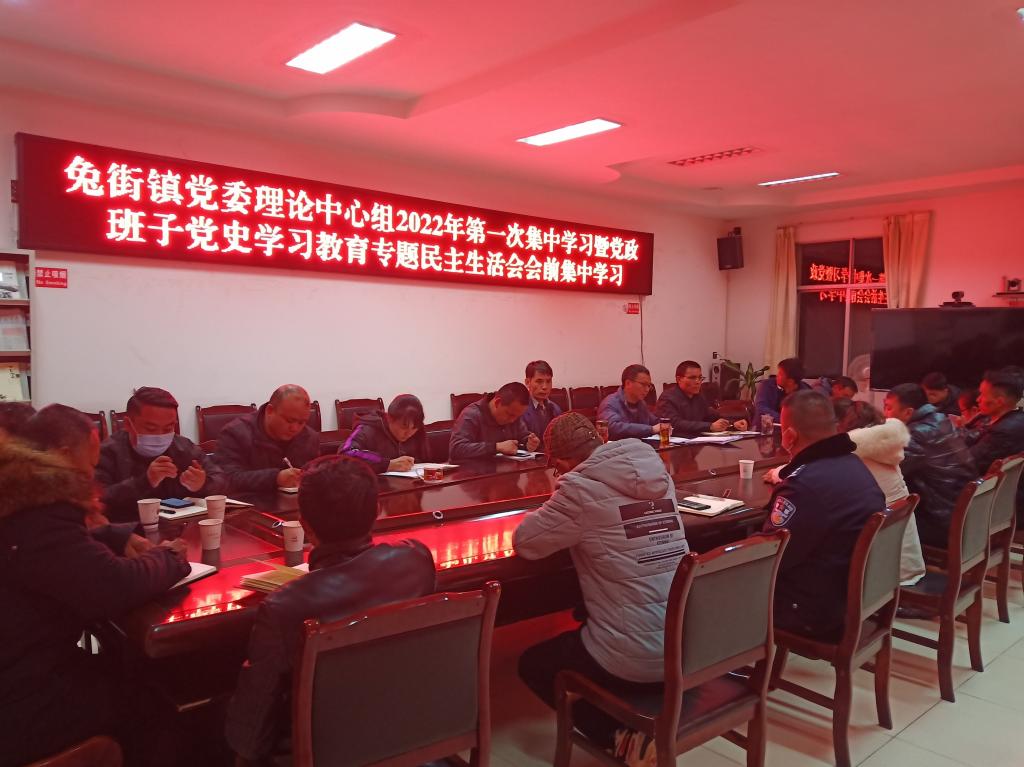 1月19日,兔街镇开展党委理论学习中心组2022年第一次集中学习暨党史学习教育专题民主生活会会前学习。党政班子成员、科级非领导职务干部,镇属单位主要负责人等30余人参加学习。