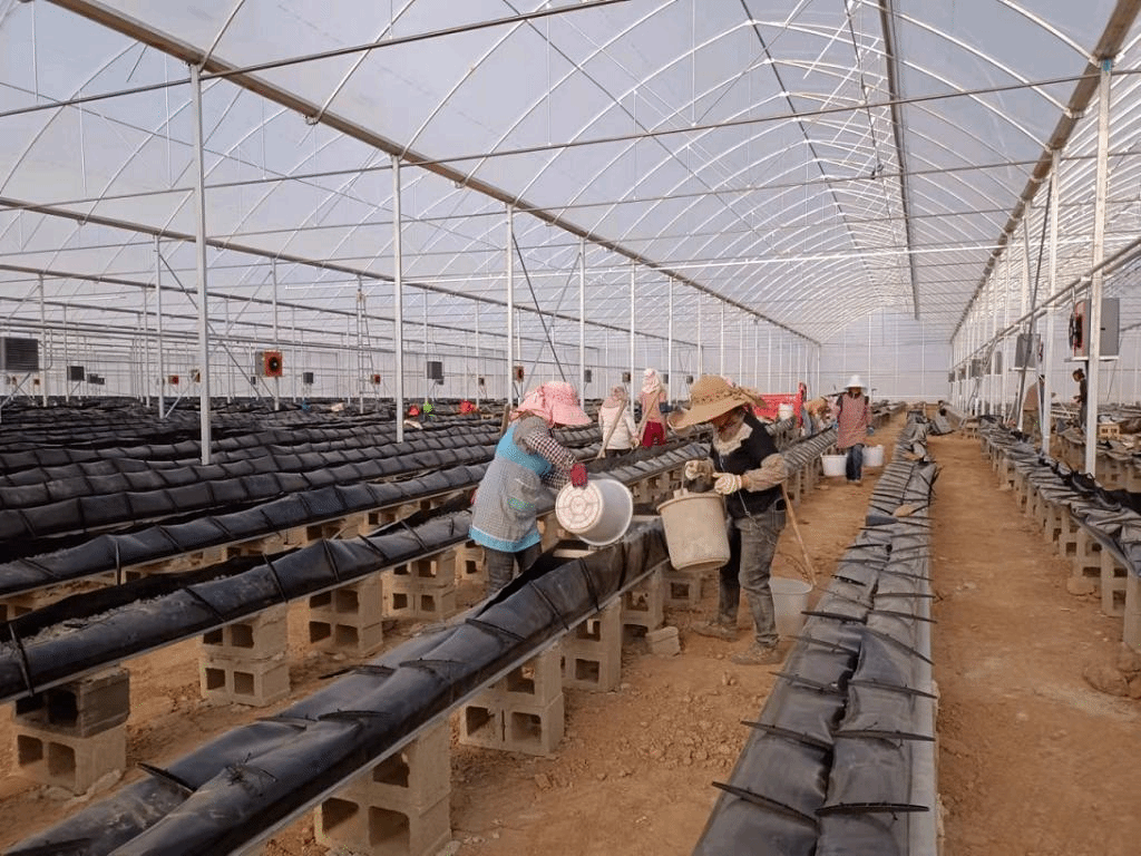 走进刚建好的河硐村现代特色农业产业基地温暖的大棚内,一条条黑色的种植床整齐地排列着,工人们正在忙碌着往种植槽内填滤石垫料。工人王建生说:“我家两口子从9月份就在这个工程干到现在了,原来跟施工队干,现在施工单位撤了后跟种植企业干,已经干了十多天了,老板说了,过年前1号棚全部加完,过年后接着加2号棚,还有椰糠基质到货后接着干,能做到3、4月份移栽结束了。”“一天有多少工钱呢?“两口子一天能有170元,在家门口干可以照管家里,什么都方便”。