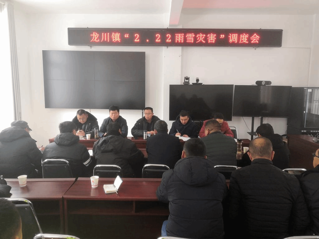 2月22日下午2时,镇党委书记张育果主持召开龙川镇应对2.22雨雪灾害应急处置调度会,镇四班子成员、镇属有关单位负责人参加了会议。会议传达了县委、县人民政府领导关于做好2.22雨雪灾害应急处置指示精神,听取镇属各单位关于2.22雨雪灾害有关情况汇报,镇长夏正对全镇2.22雨雪灾害应急处置进行了调度。