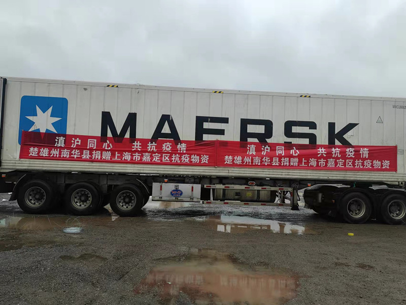 随着汽车发动机的轰鸣声,五街镇支援上海市嘉定区的10余吨农副产品正式发往目的地。
