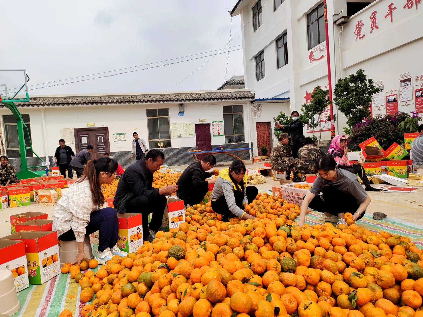 在树密鲊村委会的院子里,党员干部与工人们忙着分拣、装箱、搬运柑橘,准备大干一场。
