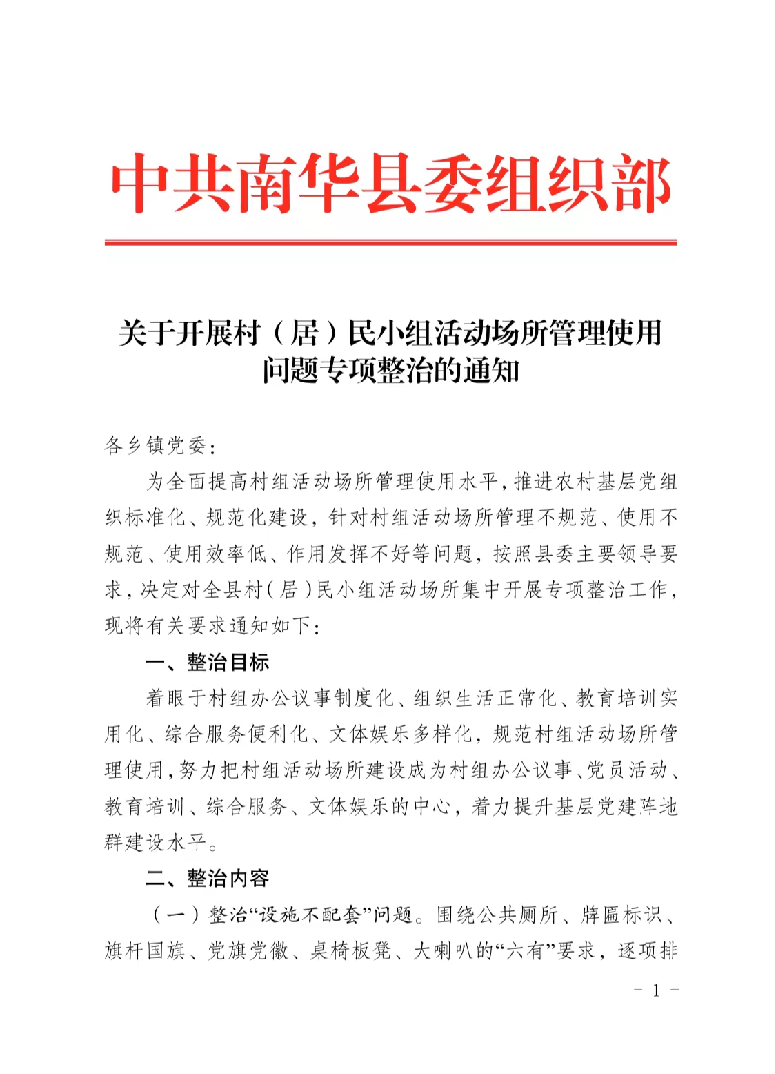 【党建工作】4月21日,为全面提高村组活动场所管理使用水平,推进农村基层党组织标准化、规范化建设,针对村组活动场所管理不规范、使用不规范、使用效率低、作用发挥不好等问题,沙桥镇组织成立八个村民小组活动场所管理使用问题专项整治工作组,4月24日前将对全镇77个活动室逐一进行排查,对存在问题开展集中整治。