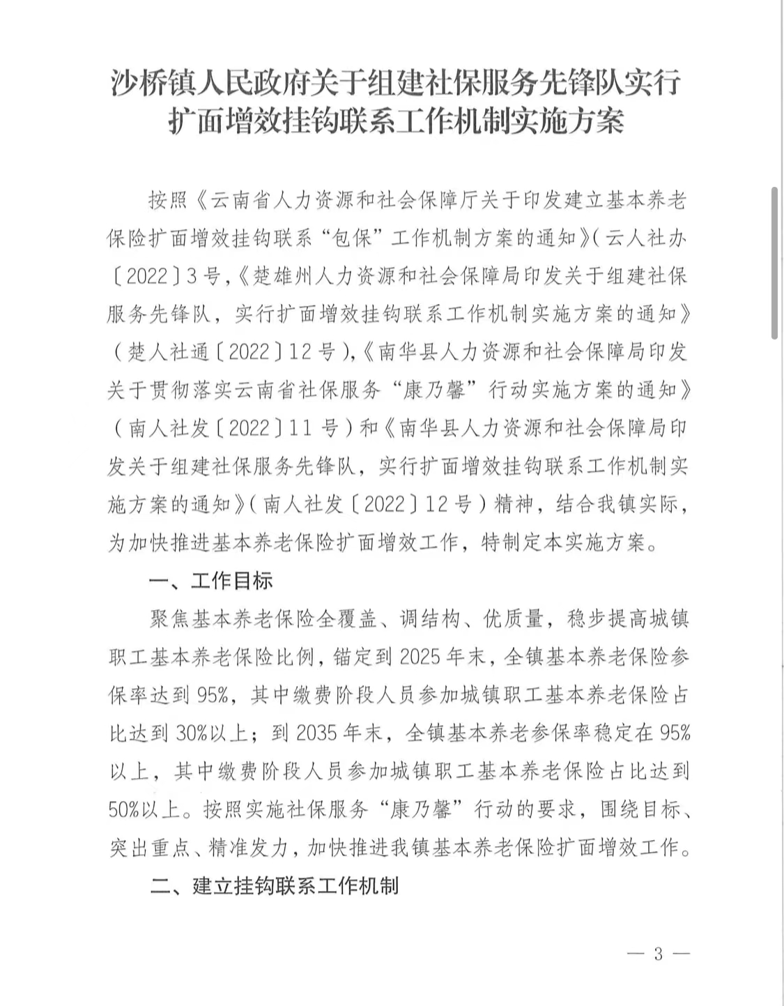 【社会保障工作】4月22日,为加快推进基本养老保险扩面增效工作,沙桥镇制定并下发了《沙桥镇人民政府关于组建社保服务先锋队实行扩面增效挂钩联系工作机制实施方案》,聚焦基本养老保险全覆盖、调结构、优质量,稳步提高我镇城镇职工基本养老保险比例,锚定到年末,全镇基本养老保险参保率达到95%。