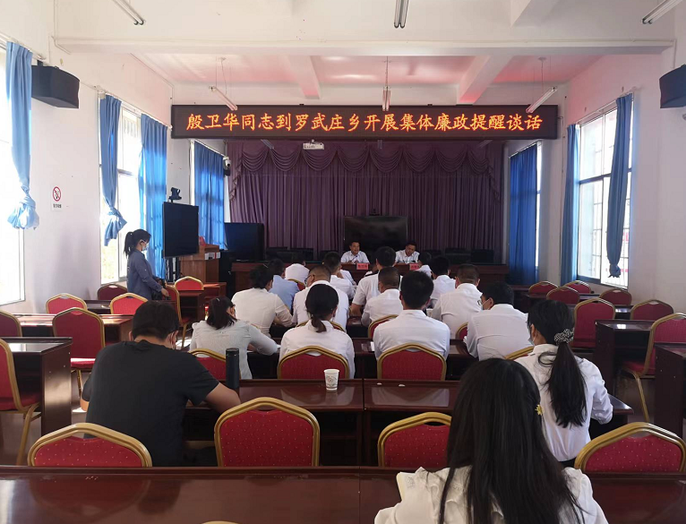 4月28日,县政协党组书记、主席殷卫华到罗武庄乡开展集体廉政提醒谈话,乡党政班子成员、站所负责人、上管单位负责人参加会议。
