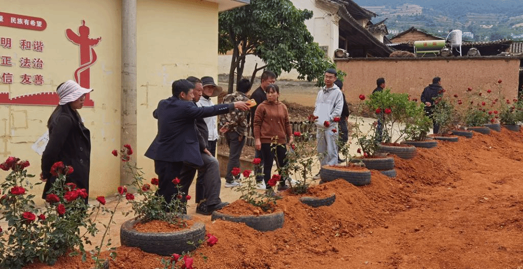 观摩结束后,在羊歇地村委会召开人居环境现场推进会议,并对评比名次进行授旗,三家村委会充分利用玫瑰花种植资源优势,在三家上下组打造玫瑰花园、怀旧老物件景观,建设宜居美丽村庄,此次评比获得红旗,成为各村学习典范。取得黄旗的村委会进行表态发言,各村党总支书记分享了人居环境现场观摩体会及下步工作思路,乡人民政府主要领导对下步工作进行安排。