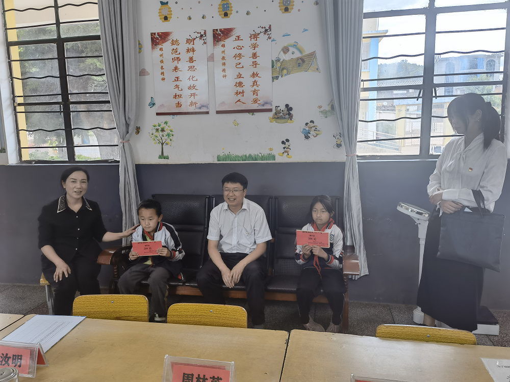 随后王连波一行到洒披武小学慰问何磊和何静毅小朋友。王连波与孩子亲切交流,详细了解他们的学习、生活、家庭情况,叮嘱他们要好好读书,掌握丰富的知识,树立远大的理想,掌握自己的未来。并向他们送上节日慰问金和祝福。最后王连波向辛苦付出的老师们表示感谢,叮嘱老师们要关爱关心少年儿童的健康成长,为南华未来发展培育出更多的栋梁之材。