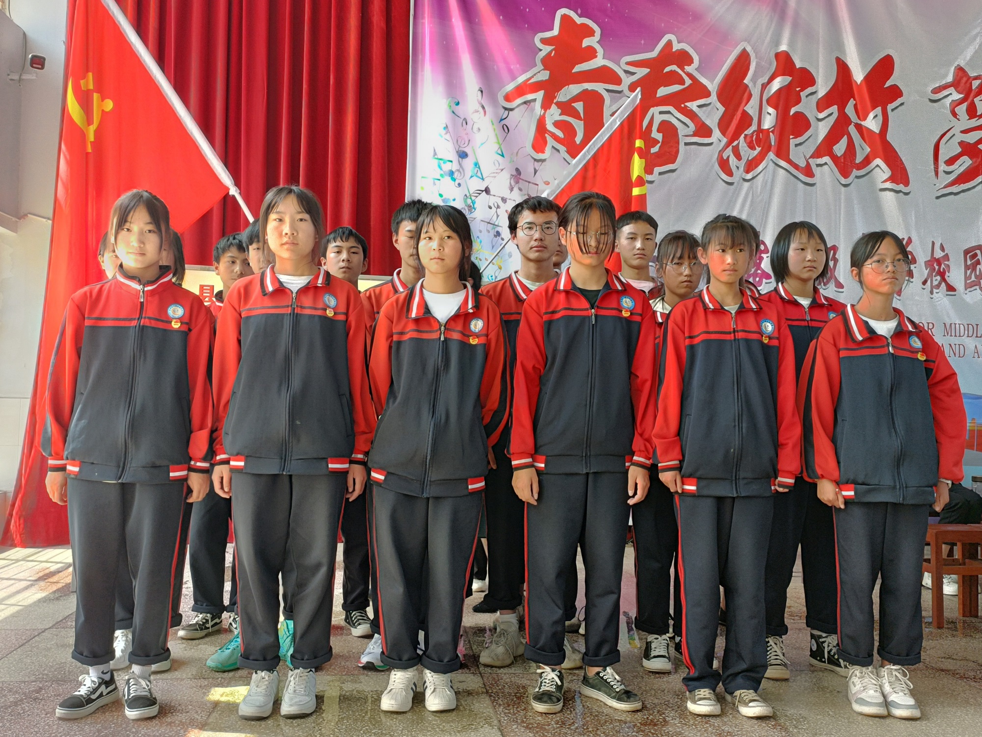举行离队入团仪式。全体师生欢聚一堂,隆重举行离队入团仪式。组织新发展的20名团员举行入团仪式,组织老团员重温入团誓词,让团员青年感受到加入共青团的光荣感与使命感,进一步增强责任意识和担当意识。离队入团,也标志着同学们进入了新的人生阶段。