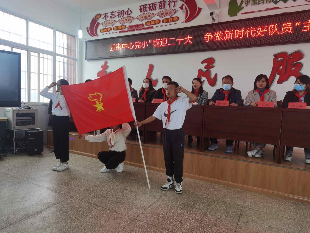 2022年是党的二十大召开之年,是中国共产主义青年团建团100周年。五街中心完小组织开展“喜迎二十大争做新时代好队员”主题队日活动,庆祝建团100周年,引导少先队员铭记革命历史,传承红色基因。
