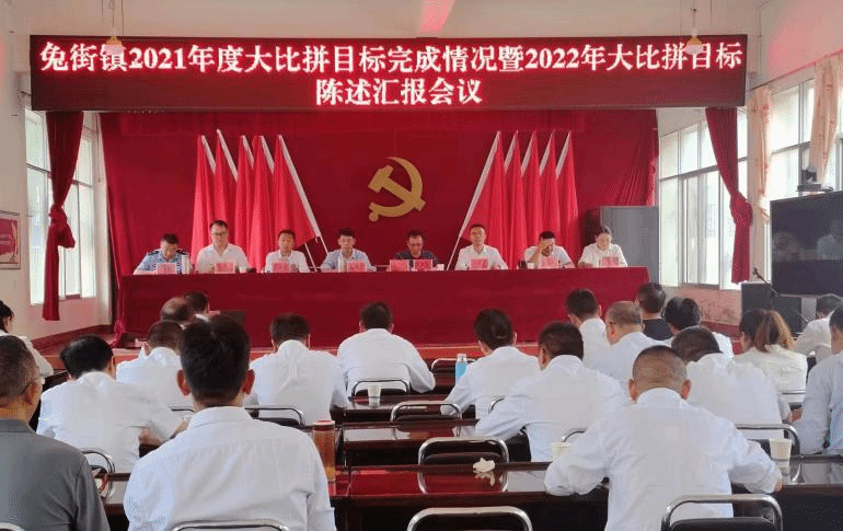 近日,兔街镇召开了2021年度大比拼目标完成情况暨2022年大比拼目标陈述汇报会议,镇党政班子成员、科级非领导职务干部、各中心站所负责人、各上管单位负责人、全体干部职工、各村党总支书记(主任)共计60余人参加会议。