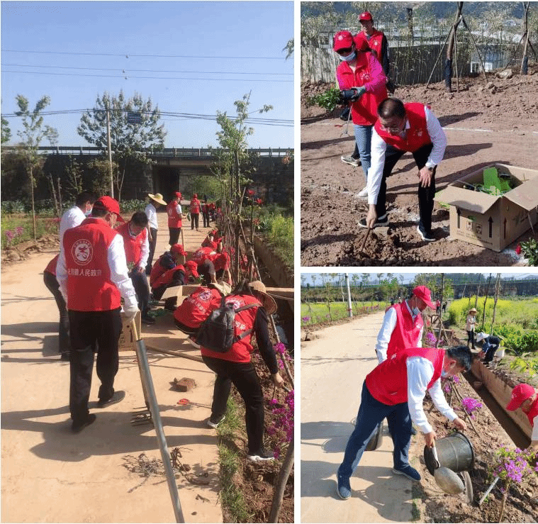为进一步加强党建引领农村人居环境整治提升工作,提高人民群众生活质量,4月13日,龙川镇组织4个镇属党支部80余名党员开展“提升人居环境 建设美好家园”主题党日活动,集中对龙川江沿岸的灵官社区永安屯小组、灵官桥小组、火星社区张合屯小组绿化带、道路两旁进行种花种草植绿补绿。