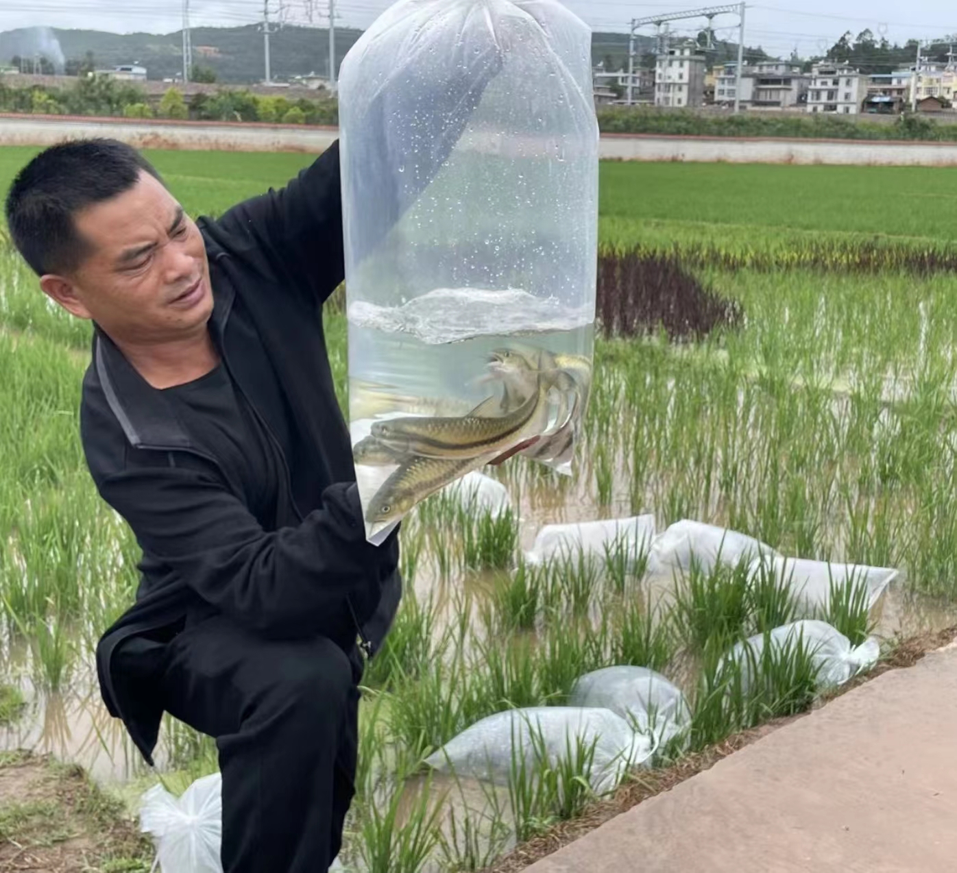 平山社区党总支书记王宗富说:“今年社区借助南华县2022年稻鱼综合种养核心样板项目的支持,通过彩色稻田示范推广稻鱼种养,在6个小组发展约2000亩、带动农户自发1000多亩的稻田养鱼示范区。投放的品种包括金元鲃和高背软鲤两个优质品种,预计亩产鲜鱼50公斤、稻谷600公斤,除去农户所有成本,每亩稻鱼农户收入在3000元左右。稻田养鱼促进了生态良性循环,提高粮食产量,还让我们当地村民增收致富。”