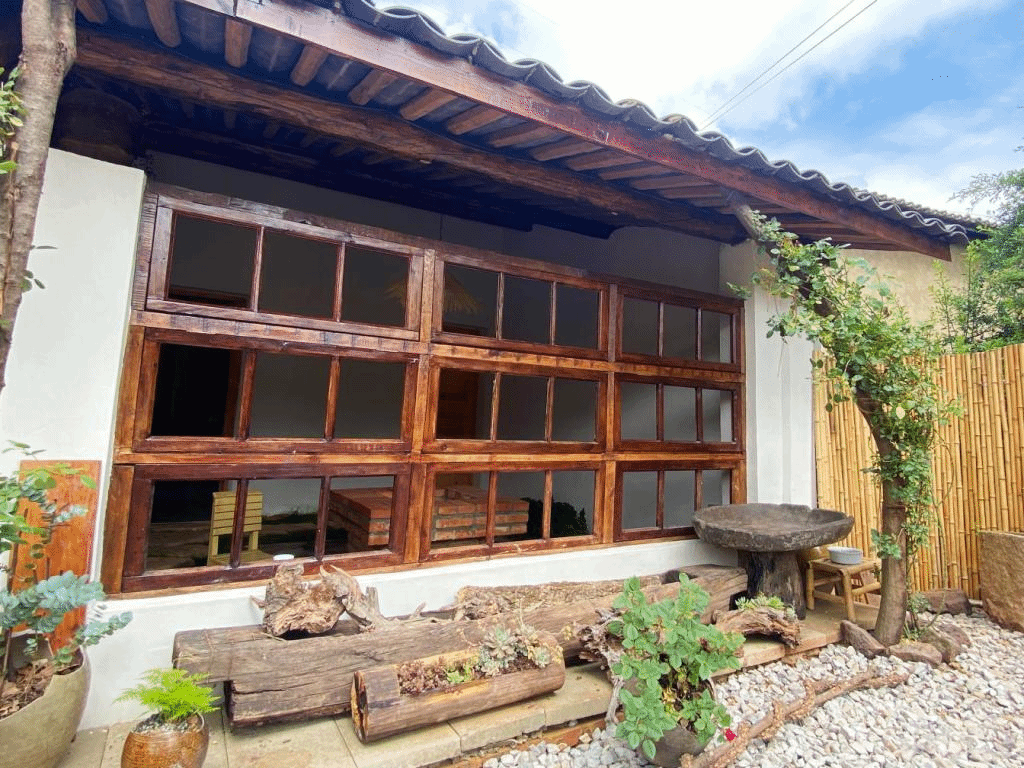 说干就干。夫妻俩自己设计,自己动手,就地取材,就势造景。经过半年的改造,小院逐渐成型。站在院内,远眺满目青翠如诗如画,近观白墙黛瓦错落有致,传统装修风格浸染古色芳香,各式老物件摆放错落有序。