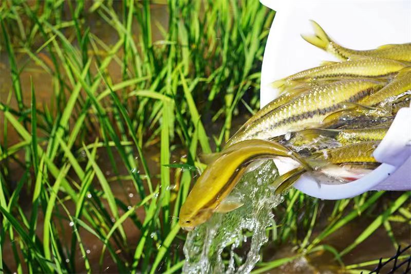 “由于在种植过程中不使用农药化肥,原生态生产的稻谷达到有机稻谷标准,均价比普通大米高出许多,稻花鱼肉质软嫩、味道鲜美,价格更是堪比“海鲜”。村民们看到了稻鱼种养的大好“钱”景,都纷纷加入到了“稻田+”的种粮队伍中来。”平山社区党总支书记王宗富说到。