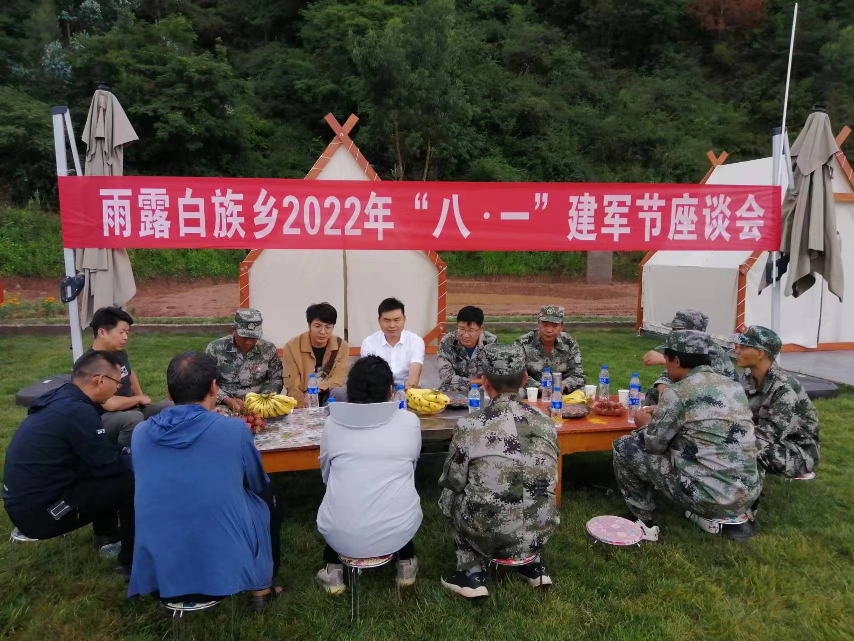 在“八一”建军节来临之际,为热烈庆祝中国人民解放军建军95周年,也为了更好地继承和发扬“军爱民、民拥军”的优良传统,营造拥军优属良好氛围,8月1日,雨露白族乡组织机关优抚对象、村两委退役军人干部及负责退役军人事务的工作人员开展2022年“八一”系列活动。乡领导班子参加活动,并向退役军人致以节日的祝贺和诚挚的问候。