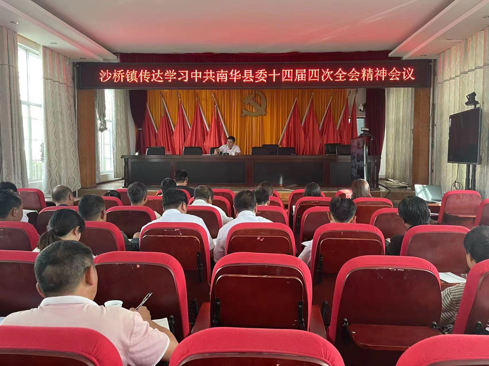 近日,沙桥镇召开专题会议,传达学习中国共产党南华县第十四届委员会第四次全体会议精神。沙桥镇党委主要领导主持会议,党政班子成员、各中心(站所)负责人、19个村党总支书记参加会议。