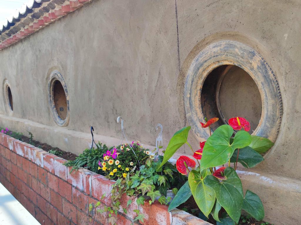 来到背阴村罗荣华家门口,首先映入眼帘的是一棵硕果累累的梨树,走进庭院,随处可见盆景绿植,右侧的假山,是由河中的石头、废弃的瓷器堆砌而成,潺潺流水,峰峦叠嶂,好有气势,宛如站立的勇士,守护着一家人的平安,水池中的鱼儿快乐的游来游去,将整个家点缀得生机勃勃。废弃的轮胎和各种花草,将墙面装点的别有洞天,放眼望去,整个院子清幽雅致。