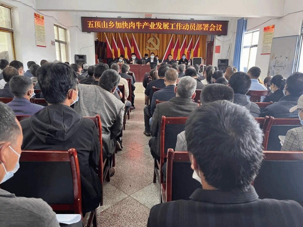 五顶山乡利用上级产业扶持资金、金融贴息贷款等帮扶资金,创新养殖模式,通过金融政策推动、牛产业专班牵动、养牛大户带动、村干部与农户联动等模式,培育壮大肉牛养殖产业,实施规模提升、质量提升、品牌提升三大举措,全面增强了牛产业综合实力。