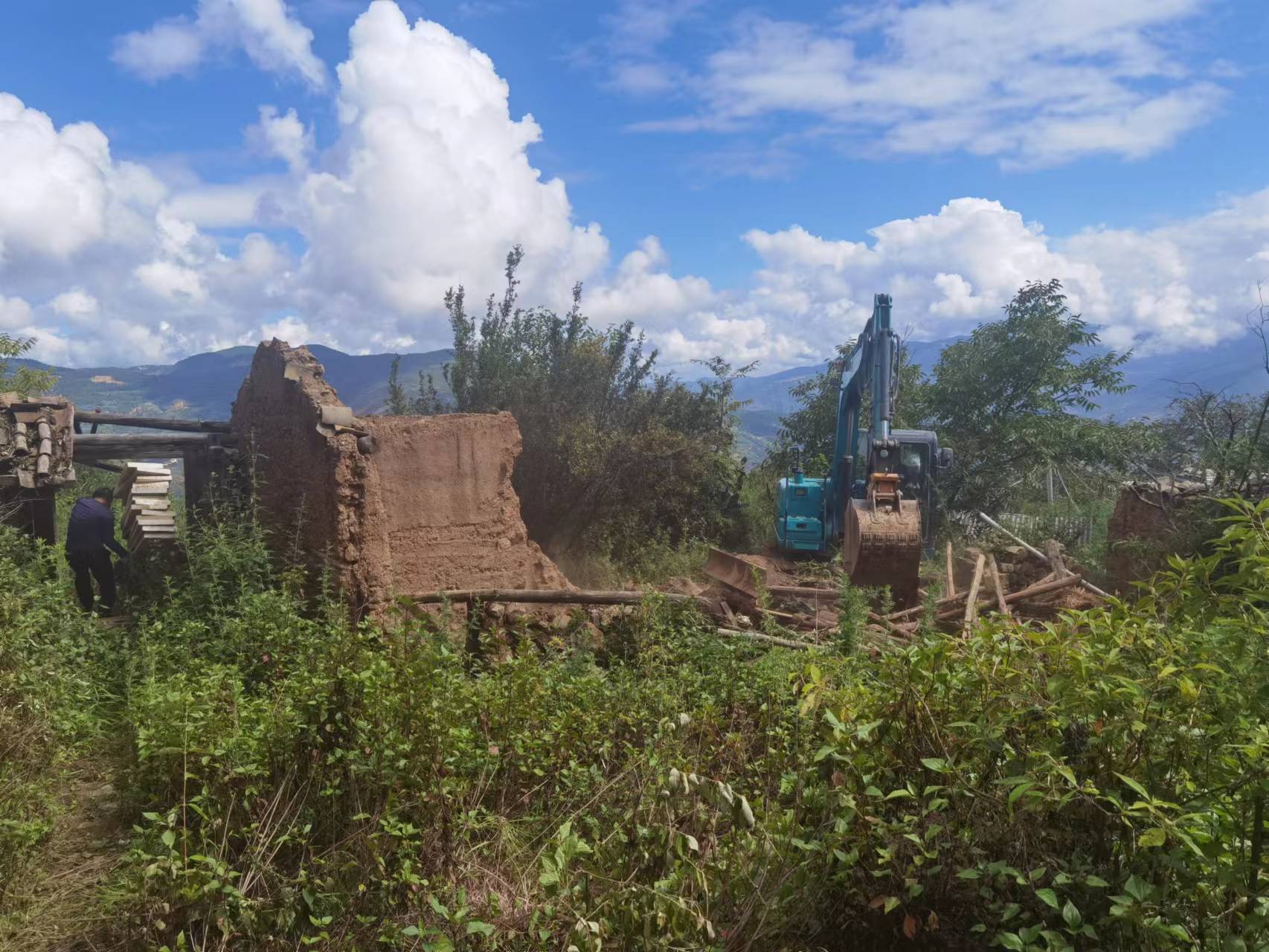 近日,南华县五顶山乡组织机械和人力整顿残垣断壁,伴随着机械的轰鸣声和飞扬的尘土,一处处残垣断壁被成功破除。