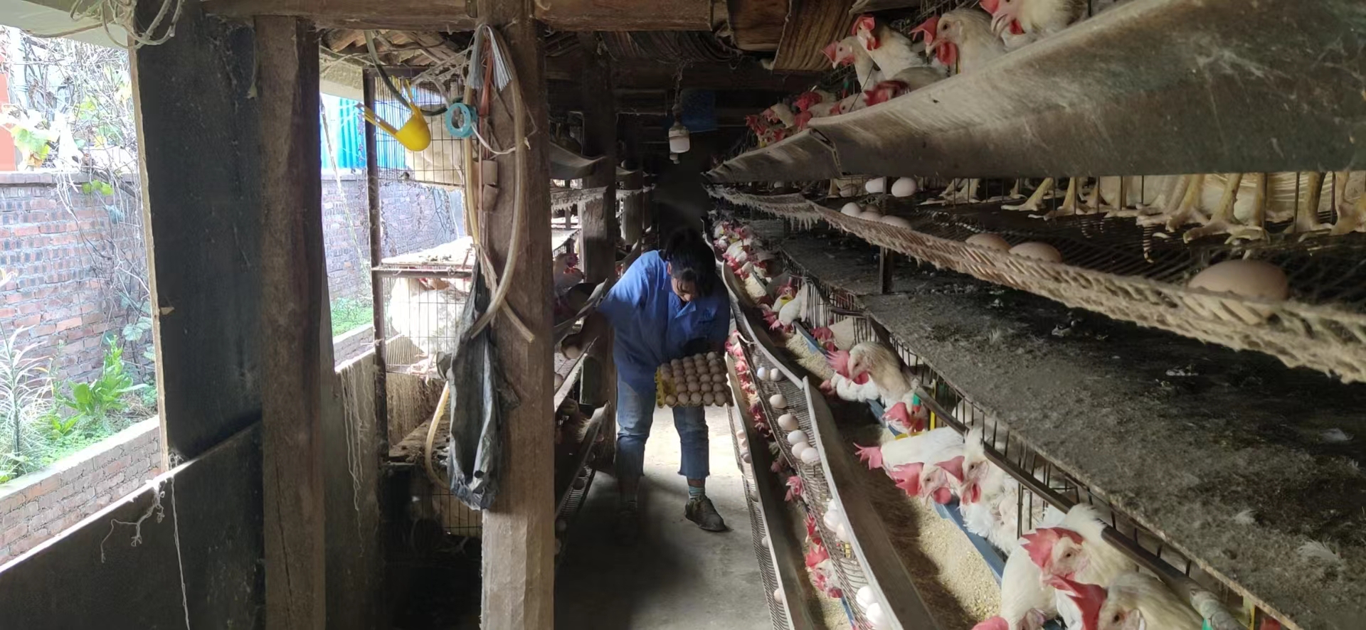 丁丕明每周将鸡蛋打包装箱运送出去,销往昆明、大理和云南楚雄等各大超市和农贸市场。同步接收活鸡售卖订单,对于养殖年限较长、产蛋率下降的蛋鸡出售给有需求的客户。与此同时,他还定期收集清理鸡粪,由本地有机肥厂上门收购,每年光卖鸡粪还有1万多元的收入,他的养鸡场实现的是“三重”收益。