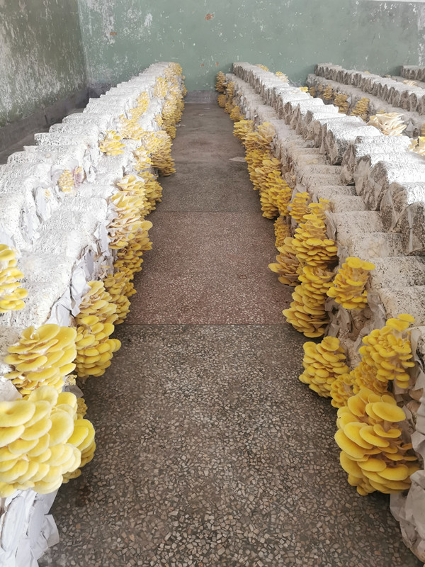 乡村两级干部经过多方考察走访,发现榆黄菇生长力强、出菇快、生长期短、产量高,加之财政对每棒菌包提供0.5元的补助,乘着政策的红利合作社便开始试种榆黄菇。