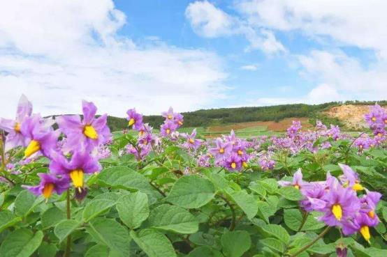 春至,沿着天五公路(天申堂至五街)放眼望去,层层梯田里都是洋芋花开的美好景象,郁郁葱葱、惹人喜爱,产出的洋芋个大皮滑,口感酥软,品质上乘,是五街镇历史最为悠久的产品。全镇共种植洋芋15000亩,产值约5000万元,一个个长势良好的“大洋芋”,在希望的田野上绽放着“薯光”。