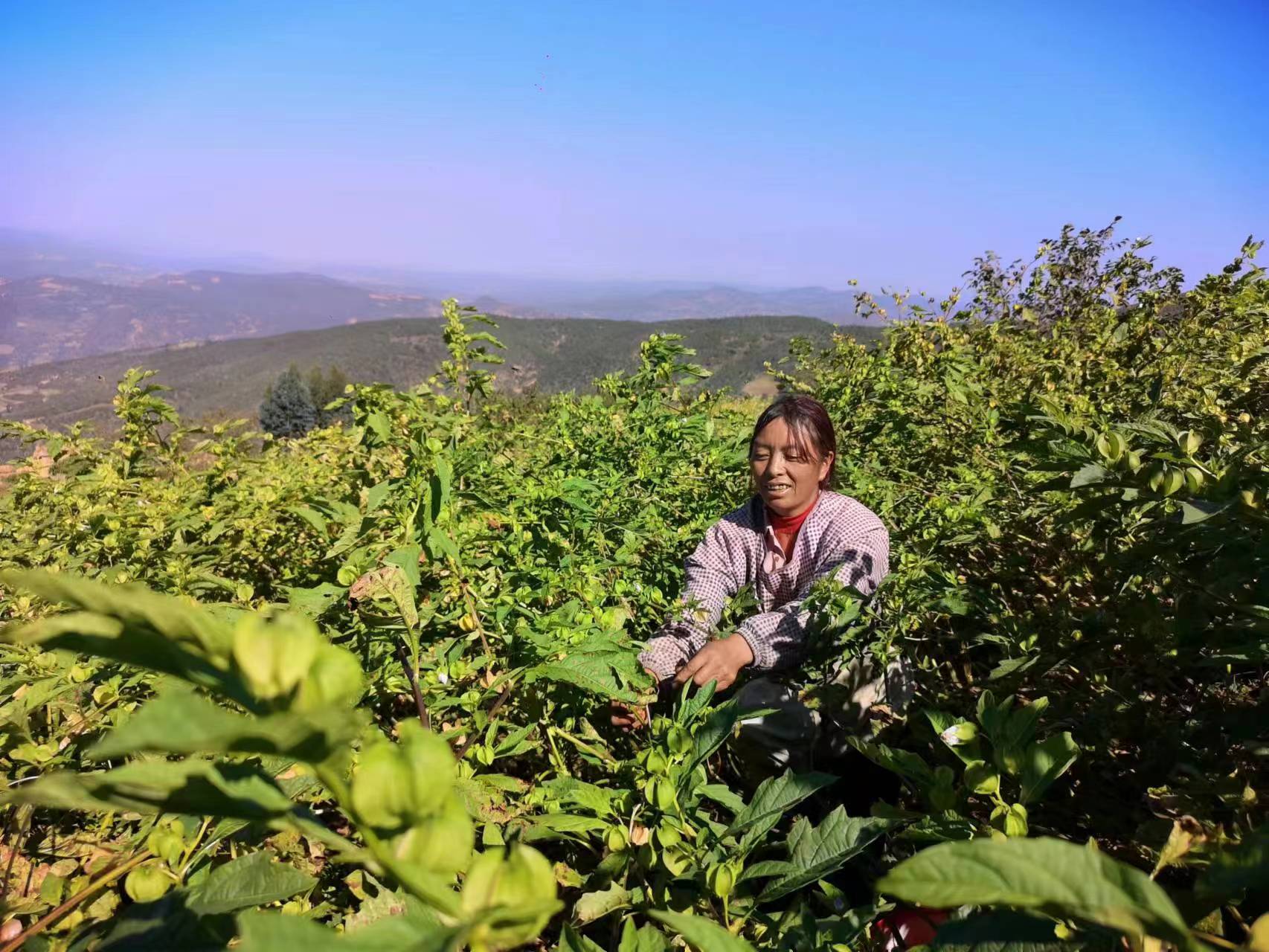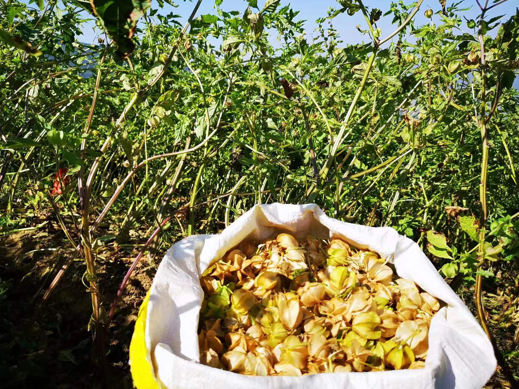 冰粉果属茄科,学名假酸浆,一年生直立草本植物,植株可以高达1.5米左右,具有较强的耐贫瘠耐干旱喜高温的特点,对土壤要求不严,主要是生长在田边、路边、荒地,或者是村庄附近,从夏末到冬季,果实会次第成熟。该种全草药用,有镇静、祛痰、清热解毒之功效,冰粉籽是凉粉的原料,是一种消炎利尿、消暑解渴的夏季保健食品。一街河流域罗武庄段中海拔地区,日照充足,植被稀少,气候温暖湿润,非常适宜冰粉果种植。