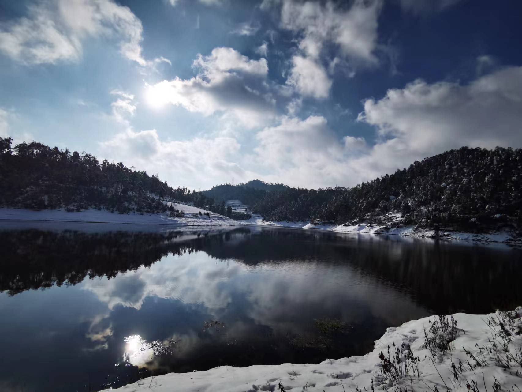 冬天来临,松茸湖披上了一层雪白的外衣,雪色与水色之间,山、水、田园、村镇的完美组合雕琢出了一个浪漫的松茸湖,仿佛踏入山水画卷之中,让人沉醉其中,流连忘返。