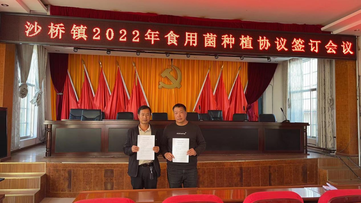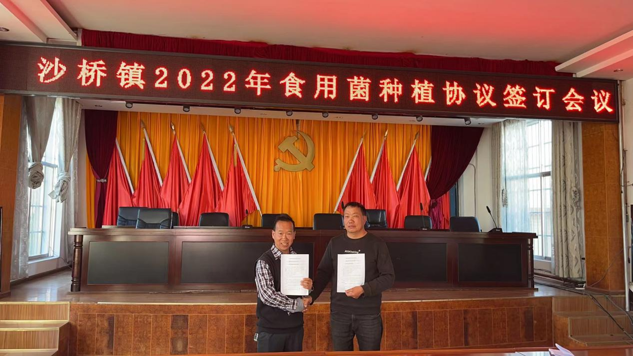 【食用菌种植】本周,沙桥镇持续推进食用菌种植工作,11月10日,沙桥镇召开2022年食用菌种植协议签订会议,会上,沙桥镇14个村与3个合作社签订食用菌种植协议。