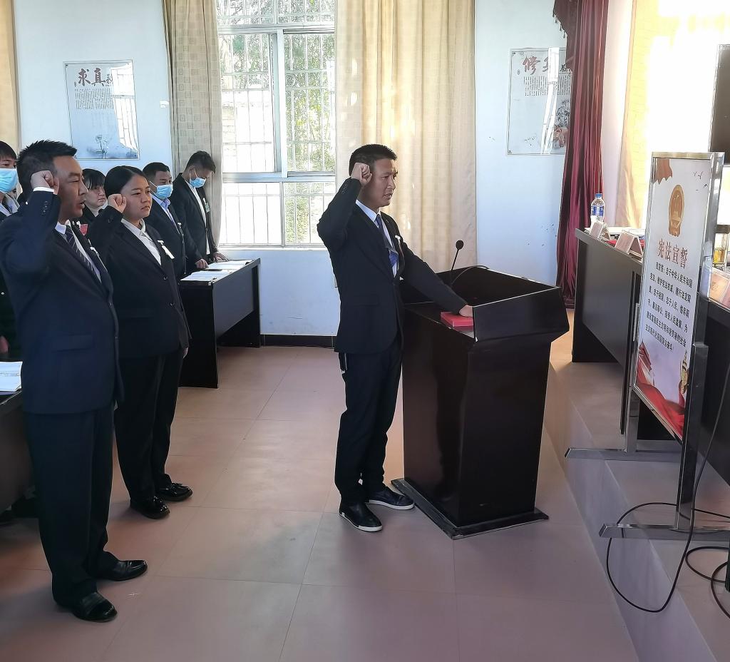 在与会人员的见证下,新当选人员向宪法进行了庄严宣誓,表达了恪尽职守,廉洁奉公的坚定决心。新当选的镇人民政府镇长作了表态发言:在县委、县政府和镇党委的正确领导下,在镇人大、各位代表和社会各界的监督支持下,按照既定的工作目标,团结带领政府班子成员,紧紧依靠全镇广大干部群众,实干笃定前行、全力以赴抓好各项工作落实。