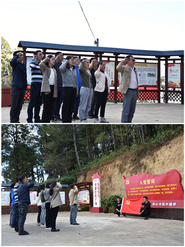 随后,两个支部的党员们前往力苴党建文化广场,在鲜红的党旗面前,兔街镇党委书记、兔街镇青年人才党支部书记阳加荣同志带领各位党员同志重温入党誓词。各位党员们纷纷表示,一定要牢记革命理想,牢记党员使命,做好表率,共同扛起鲜红的革命大旗。