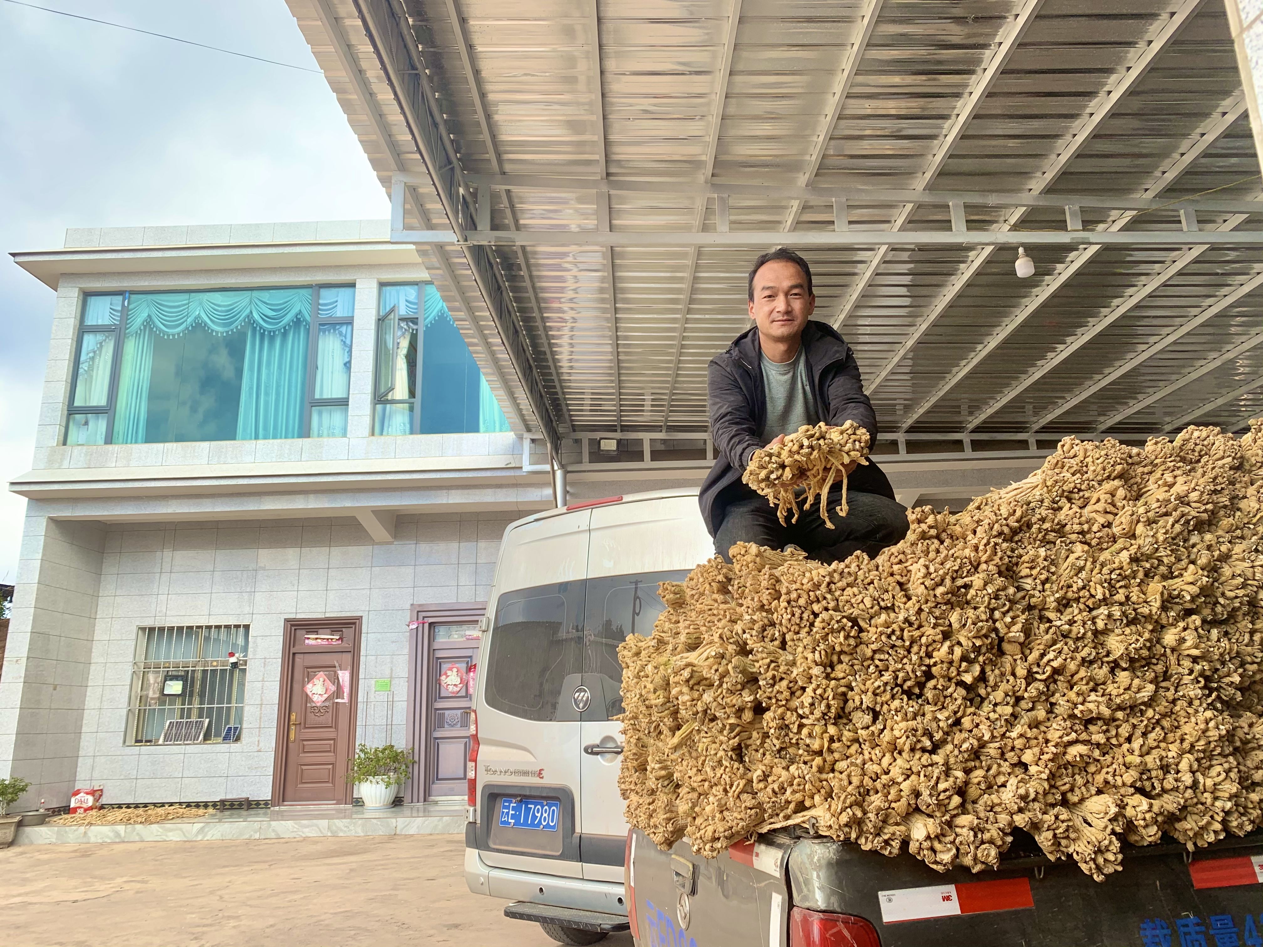 (普世昌在自家院子收购萝卜条)