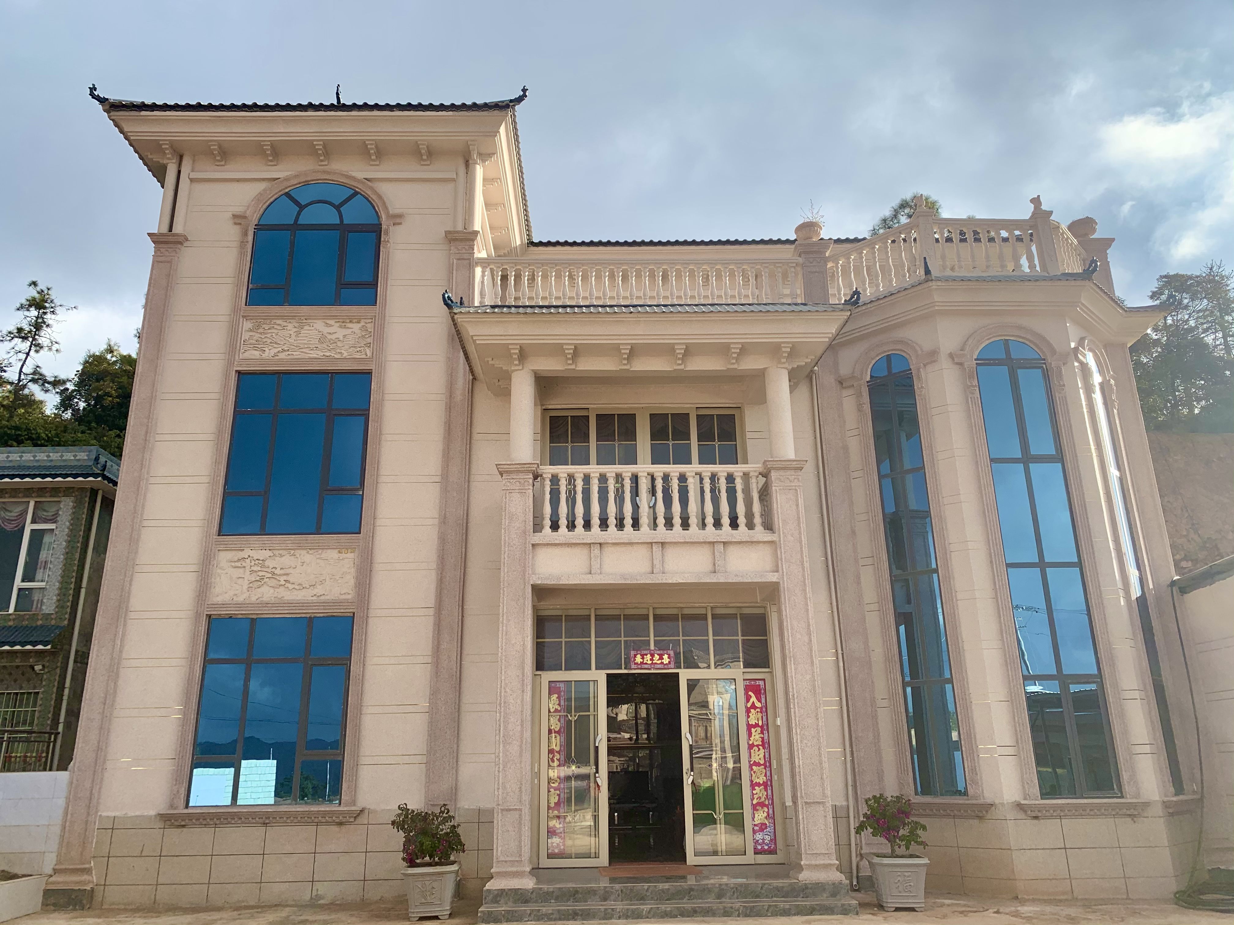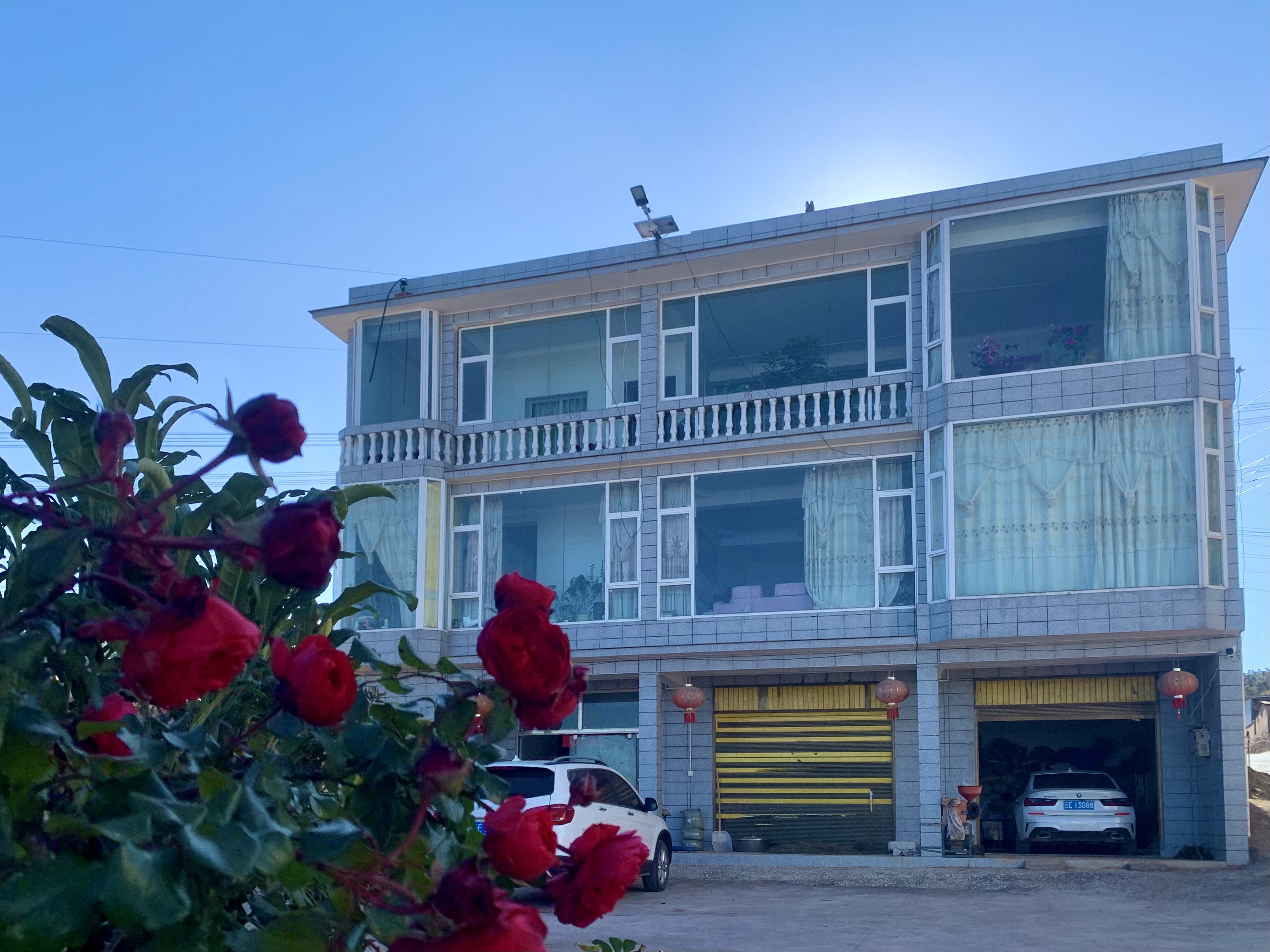 从五街村委会到咪黑们村委会,沿着平坦的水泥路走,两旁都是错落有致的乡村别墅,淡蓝色的落地窗和干净的墙壁交相辉映,宽敞的院子里停着崭新的小汽车,花台里娇艳的山茶花尽情绽放。