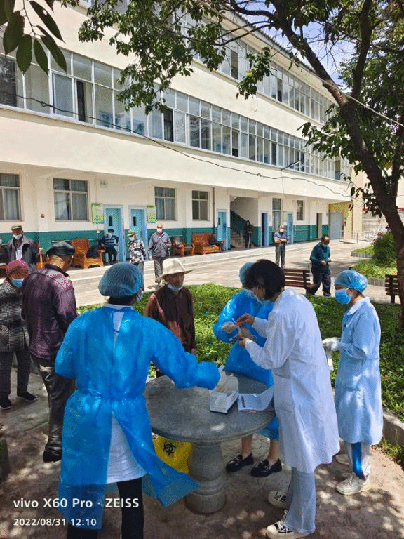 养老机构是疫情防控的特殊群体,入驻其中的老年人属易感人群。龙川镇敬老院从疫情开始就按照上级要求实行全封闭管理。核酸检测必须本着一个都不能少的原则进行,按周为院内工作人员检测核酸,按月为院内老人检测核酸。