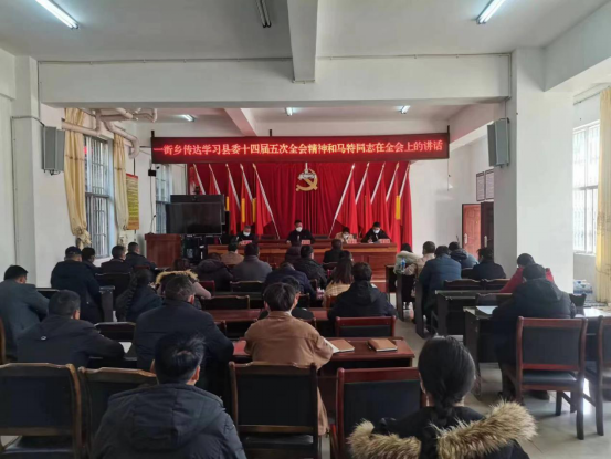 12月21日下午,一街乡召开干部职工会议,传达学习县委十四届五次全会精神。会议由乡党委书记鲁应国同志主持,领导班子成员及全体干部职工参加。