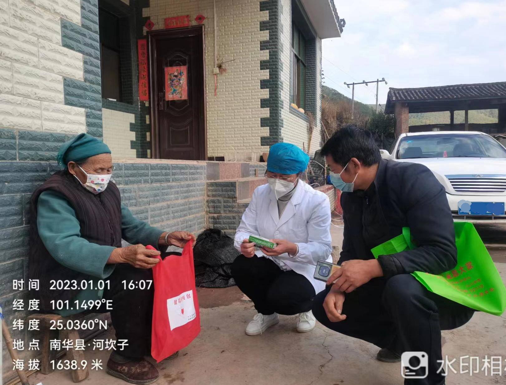 新年第一天,雨露乡各村高龄老人、残疾人家里来了一群志愿者,给他们带来了药品等“健康防疫包”,寒冷的冬天暖意浓浓。