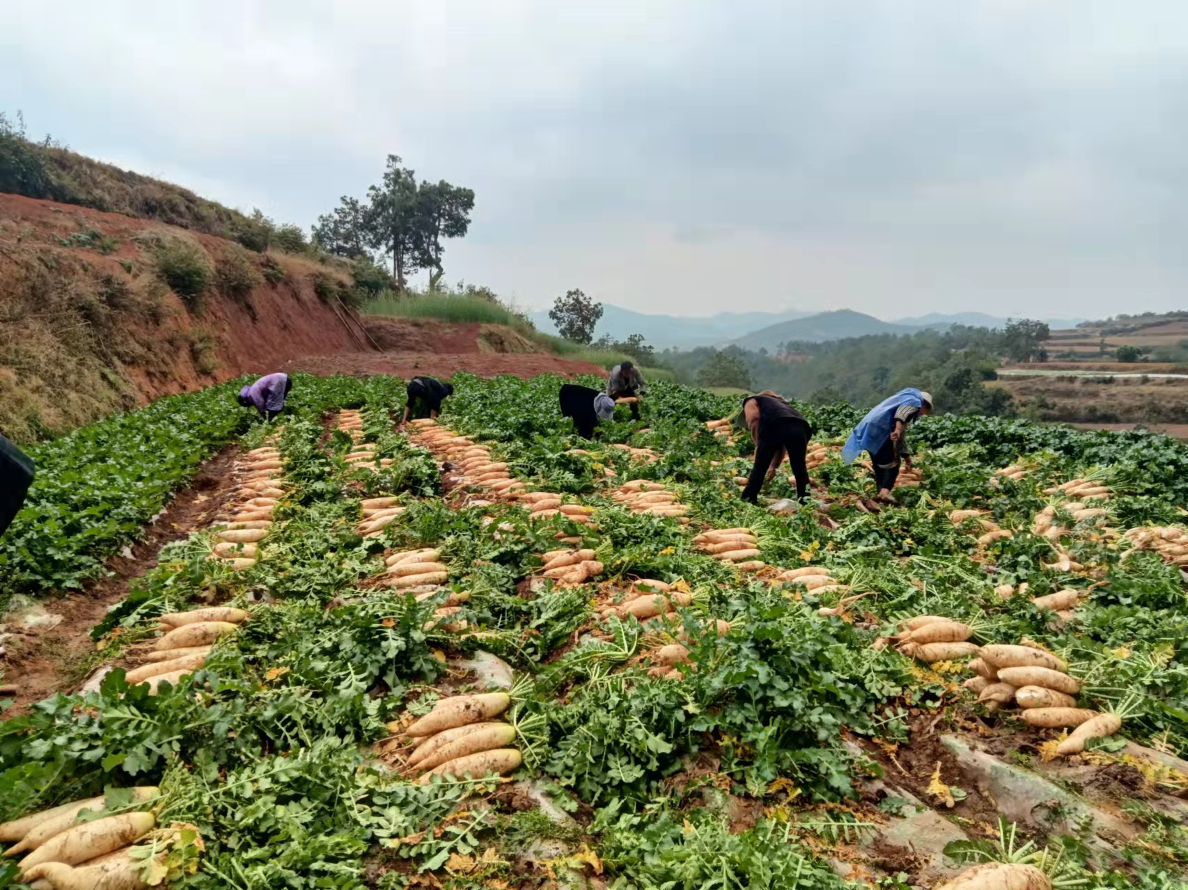 据了解,沙桥镇坚持以产业发展先锋村创建为抓手,采取“党建+企业+农户+企业务工”的发展模式,依托萝卜种植核心区和示范区,与省农科院签订萝卜产业发展战略合作协议,推广引进萝卜播种机等新工具和滴灌喷灌、“一年四熟”等新技术,每年对3000亩萝卜种植示范区开展测土配方施肥,对种植大户开展2次以上种植技术培训,形成萝卜种植引种试验、小面积示范、大面积推广的有序发展局面,提升萝卜品质和产量。同时大力提升萝卜产业附加值,目前已与云南稼禾农业公司达成合作协议,拟在沙桥集镇建设占地60亩的鲜食萝卜加工厂 ,预计年需求鲜萝卜10万吨,产值6000万,税收600万,常年用工200人,让越来越多的群众从中受益。