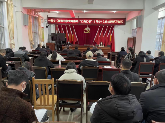为切实做好新型冠状病毒感染实施“乙类乙管”后有关应对准备和防控措施调整工作,1月3日上午,一街乡人民政府召开《新型冠状病毒感染“乙类乙管”》等6个文件培训学习会议,乡政府全体干部职工参加培训。