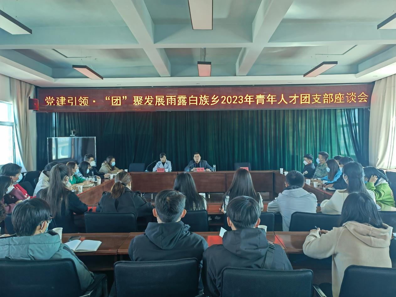 为进一步增强雨露籍青年人才对家乡建设的认同感,凝聚关注支持参与雨露新发展的青春正能量,动员吸引更多青年学子返乡创业就业,不断巩固扩大党建带团建发展成果,充分发挥青年人才生力军作用,1月14日下午,雨露白族乡召开“党建引领·‘团’聚发展”2023年青年人才团支部座谈会。参加座谈的有青年人才党支部支委班子、乡村青年骨干、返乡创业优秀青年、团支部部分团员代表。