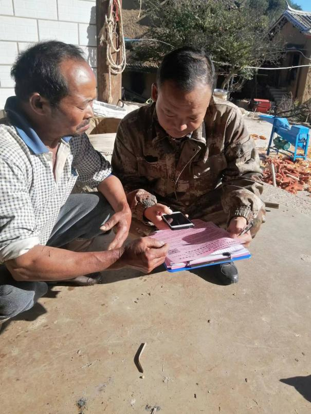 (雨露白族乡党委副书记、政法委员,雨露司法所长,村级调解员到脱贫户家中讲解危房改造相关政策)