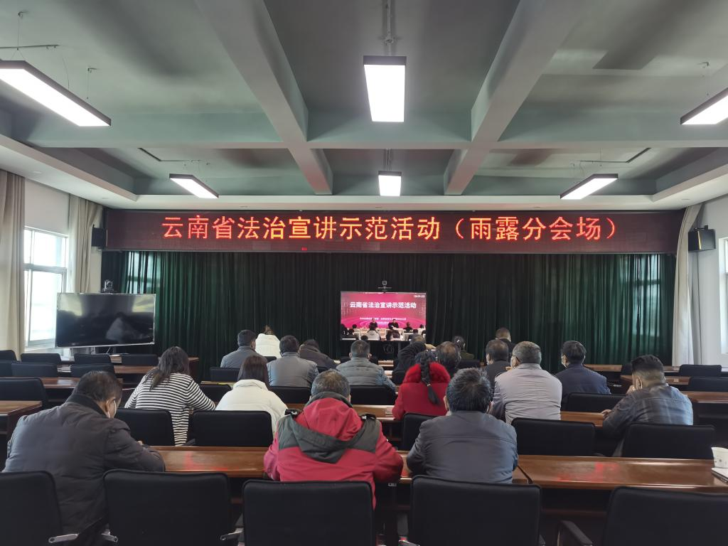 为贯彻习近平新时代中国特色社会主义思想和党的二十大精神,助力乡村振兴战略,推进依法治乡工作取得新进展,12月9日,雨露乡组织部分干部职工和村党总支书记、主任收听收看《云南省法治宣讲示范活动》,力促实现“一个干部职工辐射一个家庭”,打造人人懂法人人用法的“法味机关”。