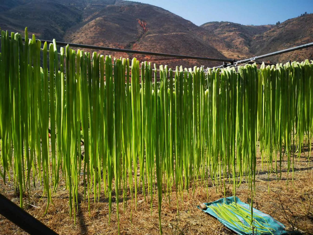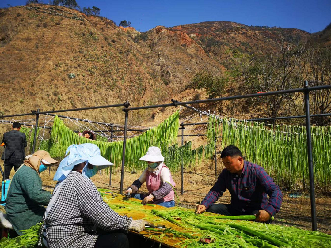 企业种植贡菜从育苗、栽种、管护、收割、削皮到晾晒,每个环节都需要人,成熟收割期从2月份开始持续到5月,当前正值贡菜收割高峰期,带动了附近10余名村民就业创收。