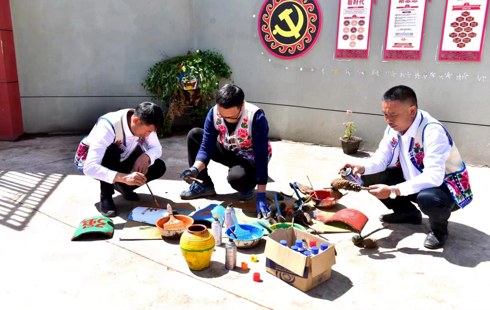 我和所有村委会干部,一趟一趟不厌其烦出入群众家中,挽起袖子,和村民一起收拾、拆除残垣断壁,还一起在村里种植了很多树。渐渐地,很多家建起了庭院小花园、小果园、小菜园,整个家园由原来的脏乱差变为美丽庭院。后来,镇上来了一群穿着“红马甲”的“绿化队”,镇政府投入资金20万元,大家一起将闲置的废木料、瓦片、旧轮胎、干松果、瓦罐等变废为宝利用起来,用于建花台、栽花、围木栏,不断“刷新”农村人居环境“颜值”。