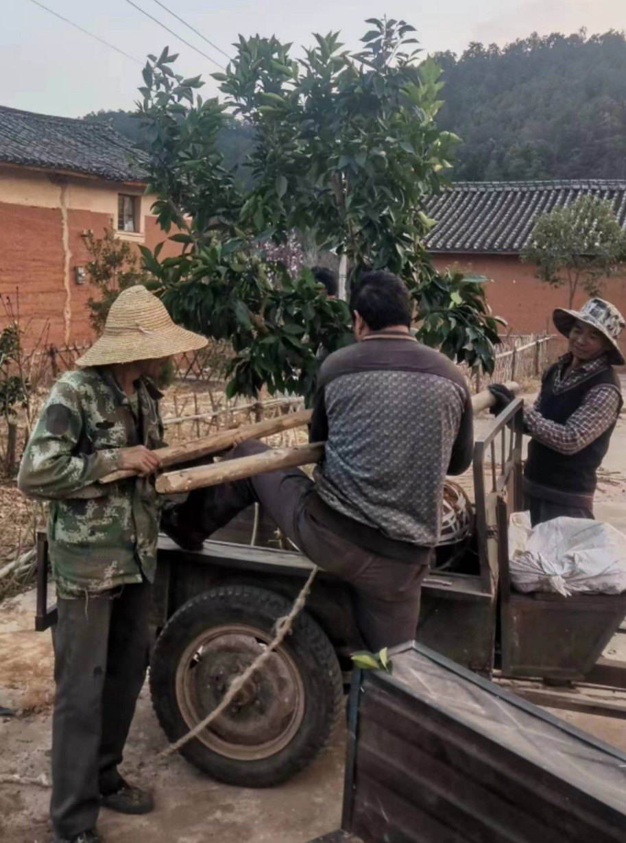在溪武首村植树现场,村民们分工协作,配合默契,运送树苗、挥锹铲土、扶苗正苗、浇灌透水,各个环节有条不紊。村民们一阵忙碌后,一棵棵新栽的绿化树挺立在公路旁,为美丽乡村添上了一片新绿。