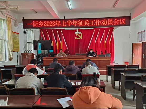 为切实做好2023年上半年征兵工作,确保适龄青年全面了解征兵信息,掌握征兵政策,激发广大适龄青年参军热情,营造浓厚参军氛围,近日,一街乡召开2023年上半年征兵工作暨2023年兵役登记工作动员部署会议,切实压实工作责任、强化统筹谋划,将征兵工作、兵役登记工作落细落实。会议通报了一街乡2022年度兵役登记暨征兵工作完成情况,并对2023年兵役登记暨征兵工作作出安排部署。